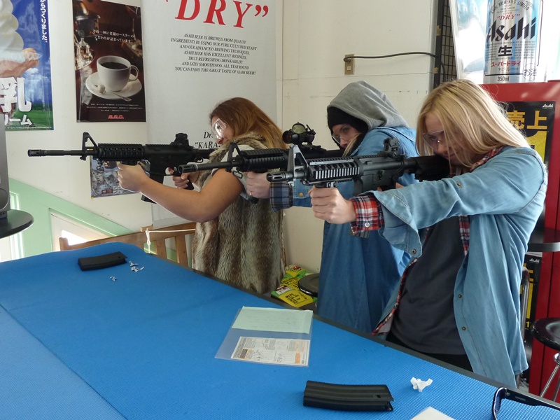 - ガンシューティングを楽しむお客様、写真アップしました。