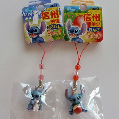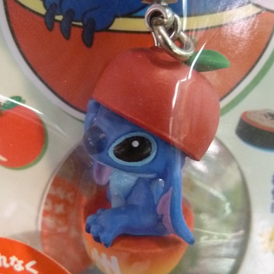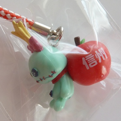 かじりかけのりんごを持ったスティッチは、とても可愛い根付になっています。
